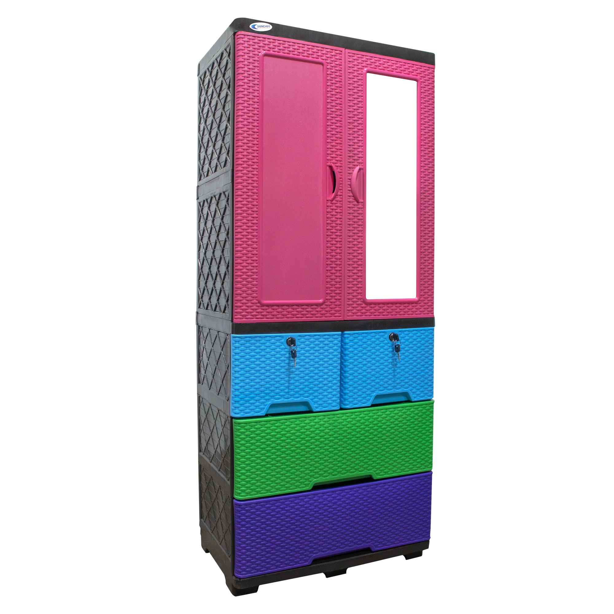 Armario Chia un espejo, 100% plástico de gran calidad, cuenta con 2 niveles internos, 2 puertas con seguridad. Es lavable y resistente al clima.