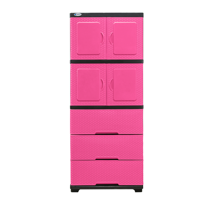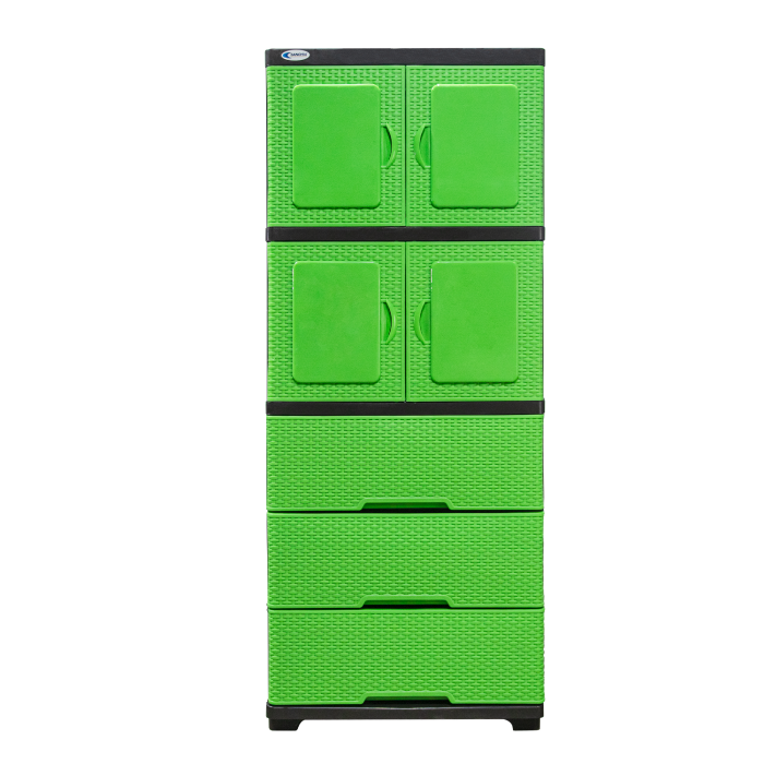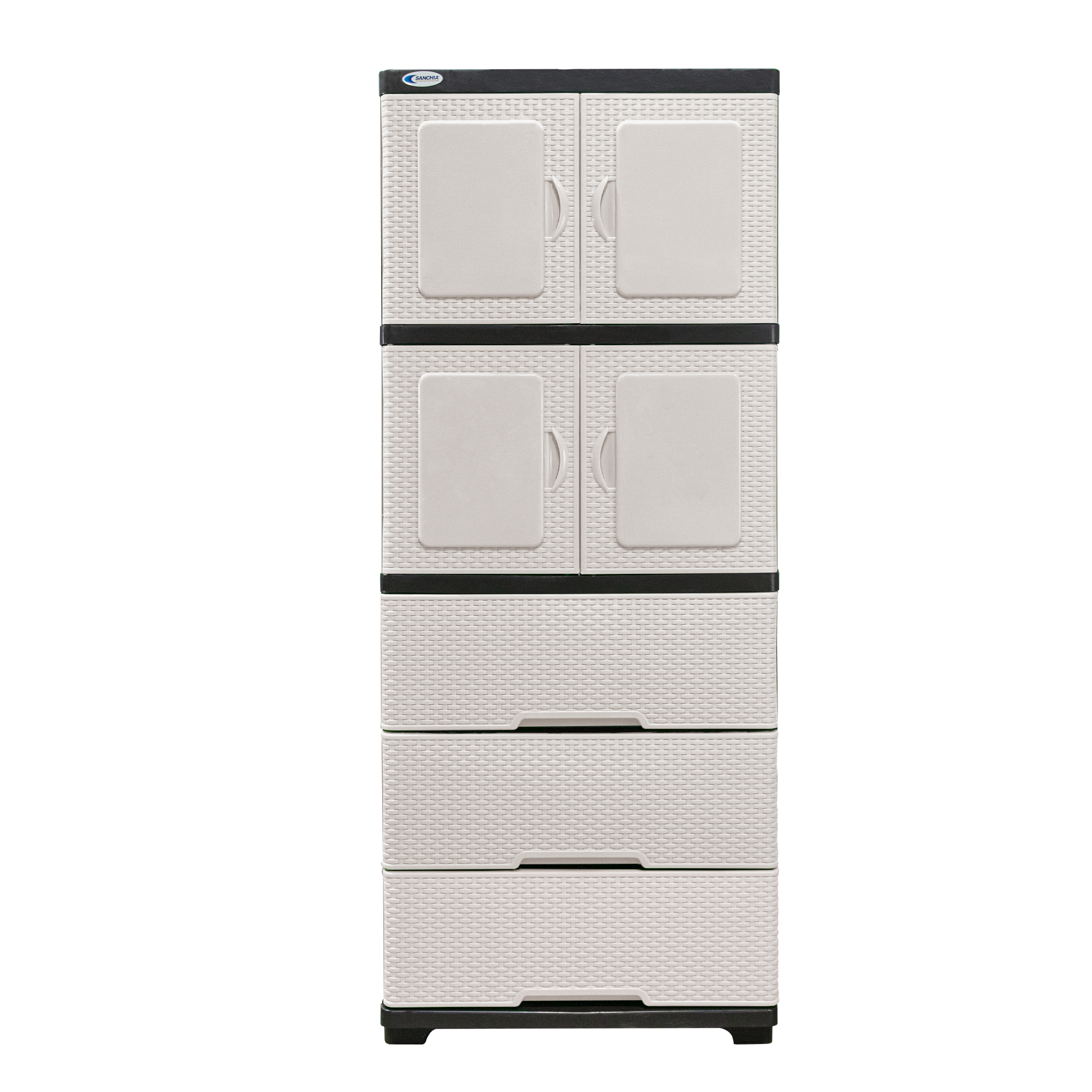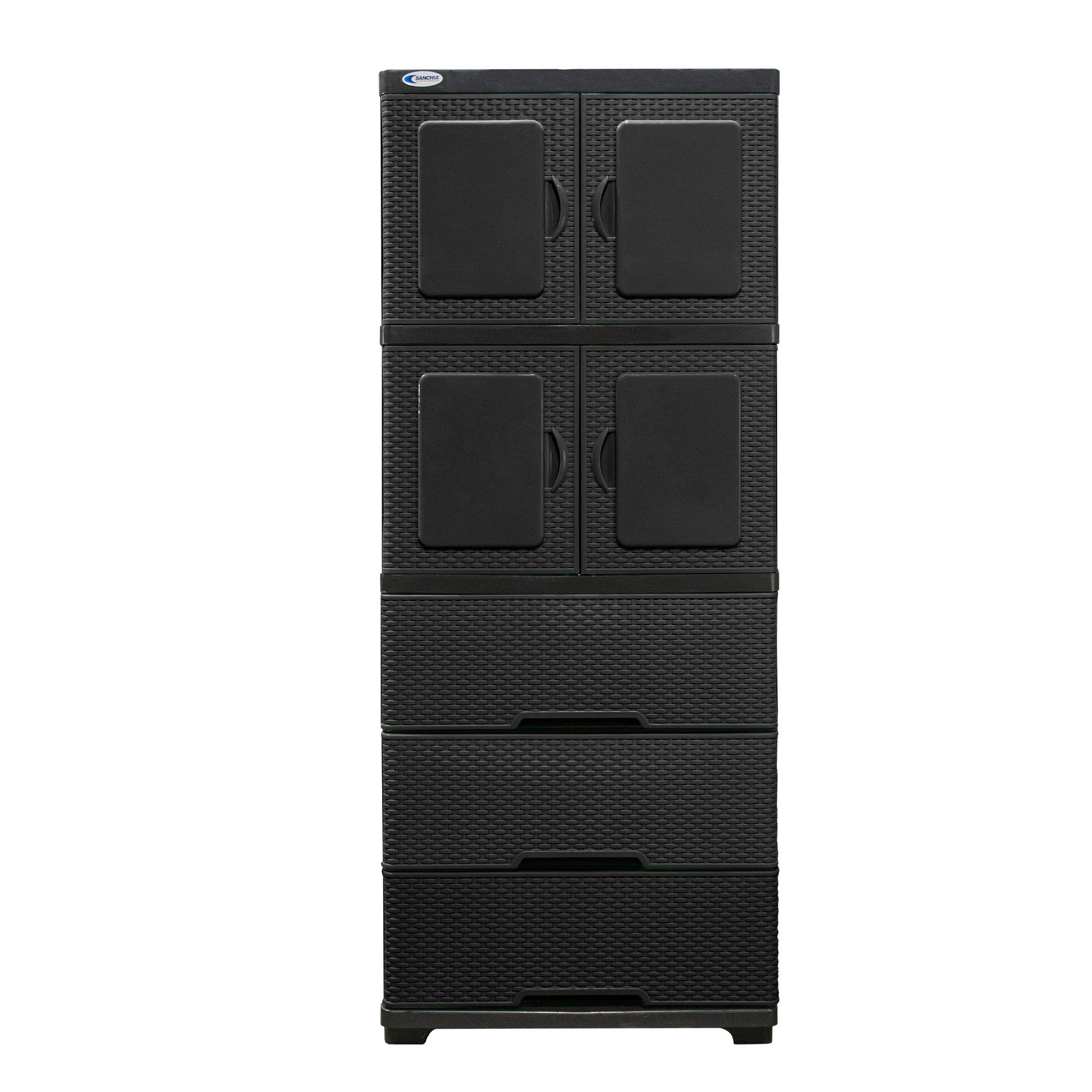 Armario con 4 puertas superiores y 3 gavetas, variedad de diseños y colores.