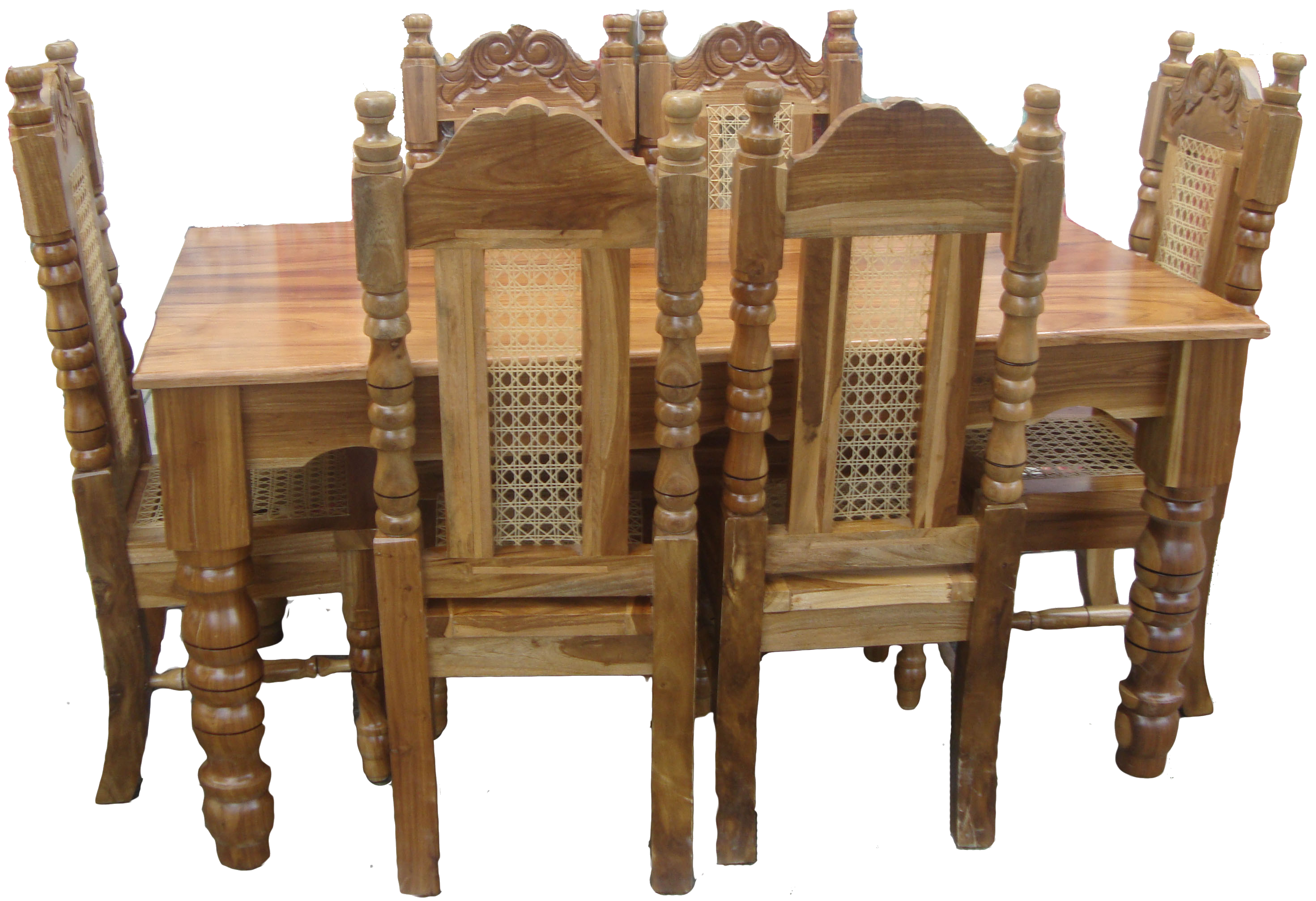 Juego de comedor enjuncado de 6 personas de madera de alta calidad